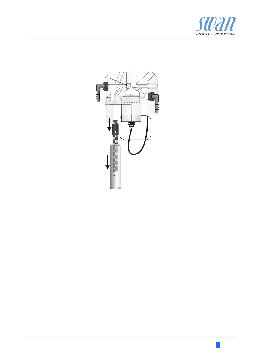 3 Unscrew and remove the filter vessel [C] from the flow cell