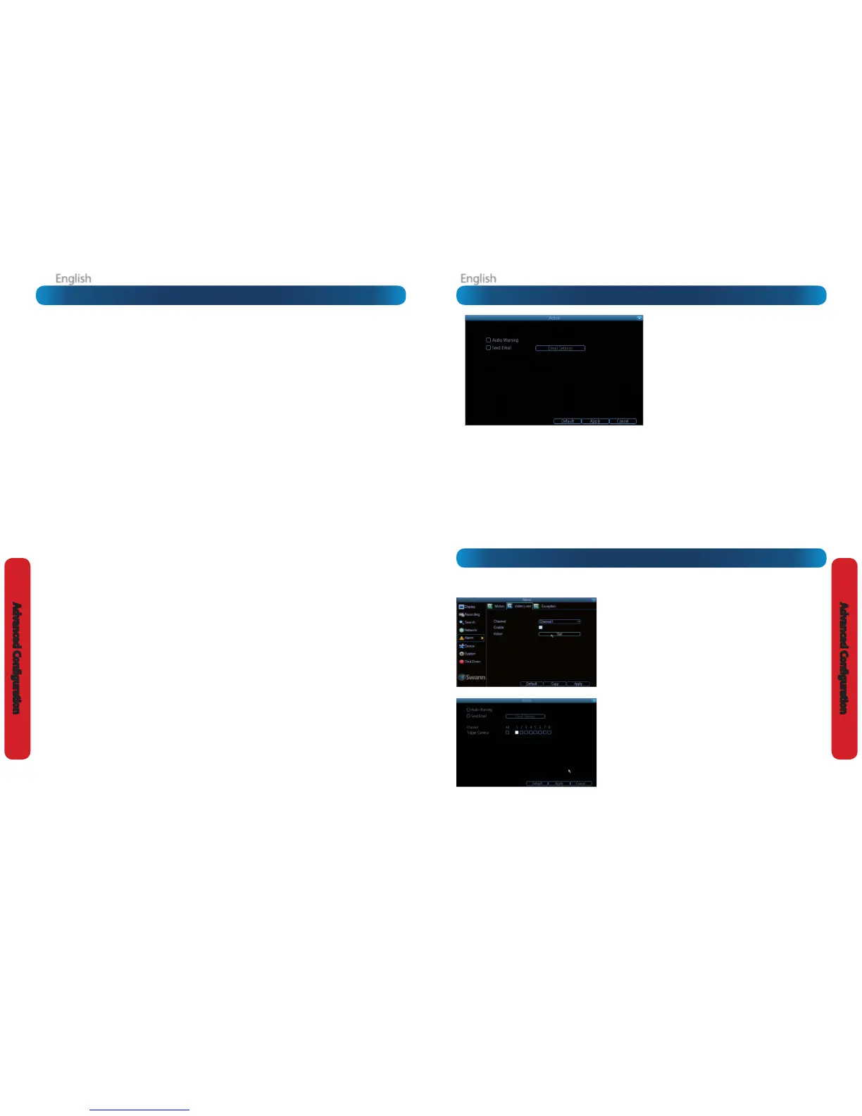 Audio Warning: The DVR will use its internal buzzer to emit an alarm tone. It