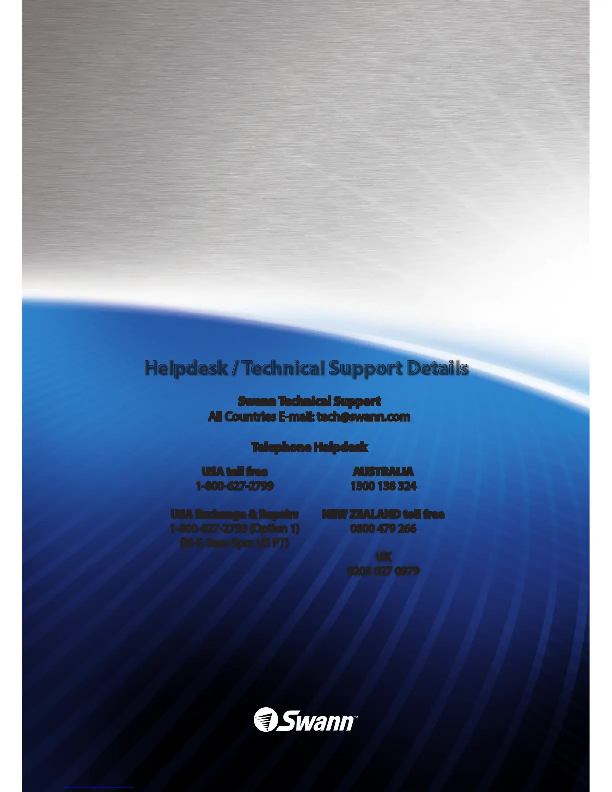 All Countries E-mail: tech@swann.com