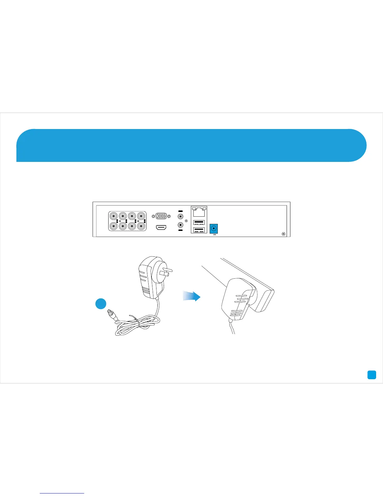 Connect the supplied power adapter’s power connection (1) to the power input on the DVR first (this will minimise