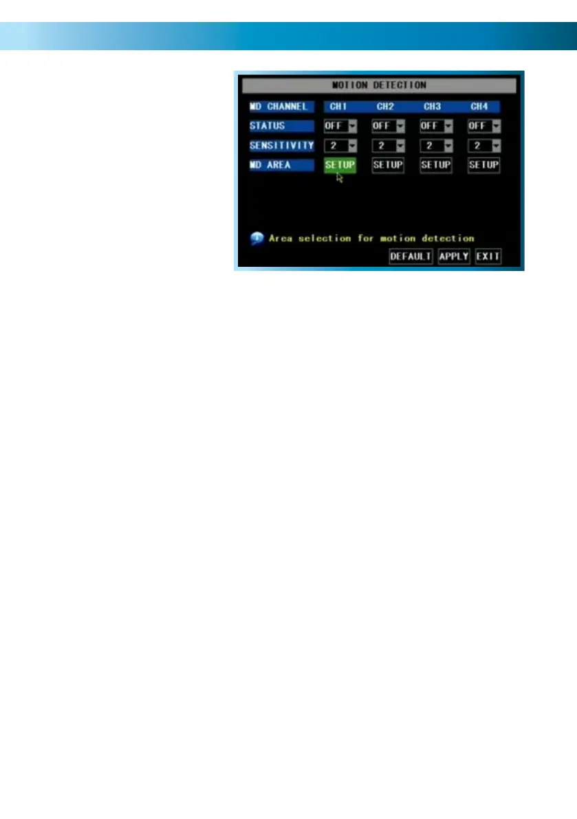 MD AREA: Click the applicable SETUP button to setup the motion detection area for