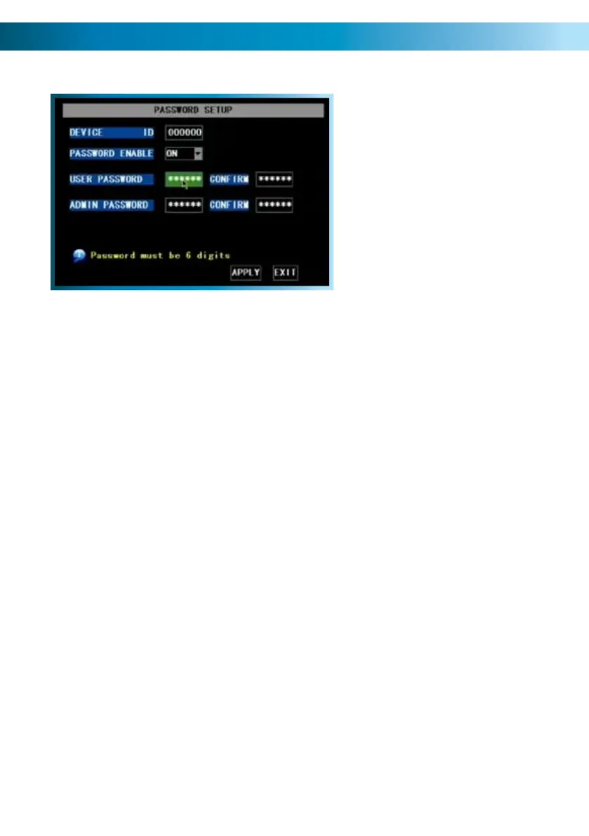 DVR) you’ll need to enter the password again in the CONFIRM box immediately