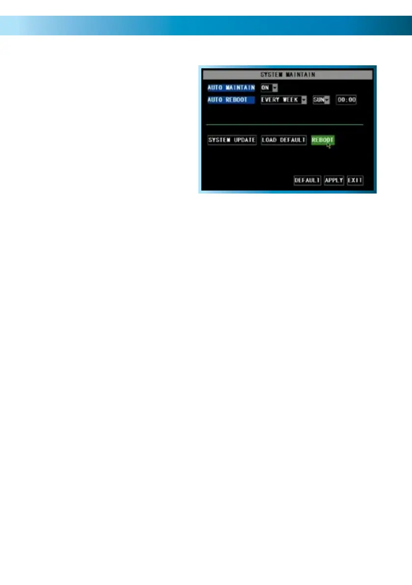 AUTO REBOOT: Will automatically shut the DVR down and restart it at a certain