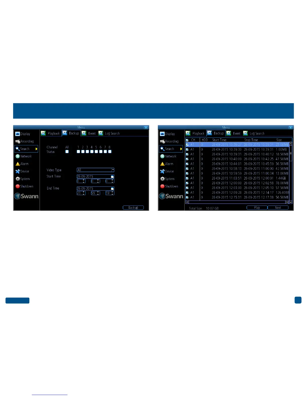 1. Click “Backup” to display a list of videos matching your search crite-