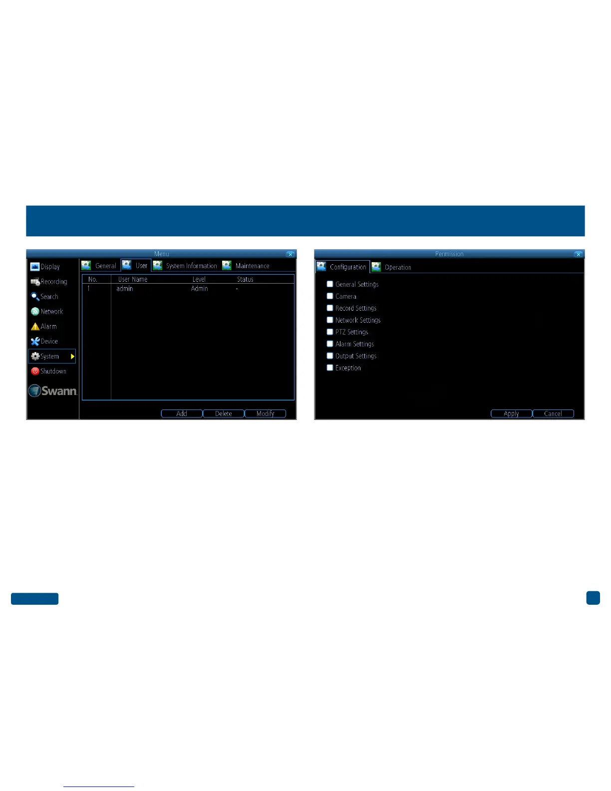 Modify: Modify an existing user’s password. Click the “Permission” but-