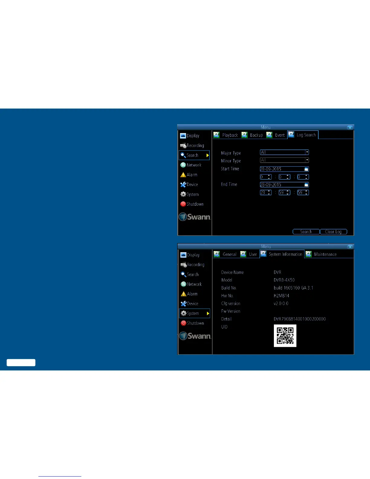 Note: DVR8-4X50 screen shown as example.