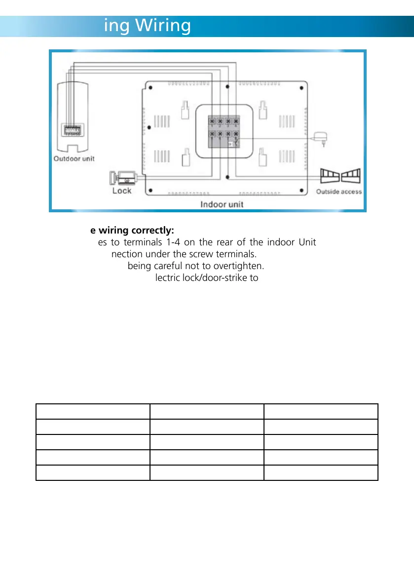 Attach wires to terminals 1-4 on the rear of the indoor Unit by sliding the •