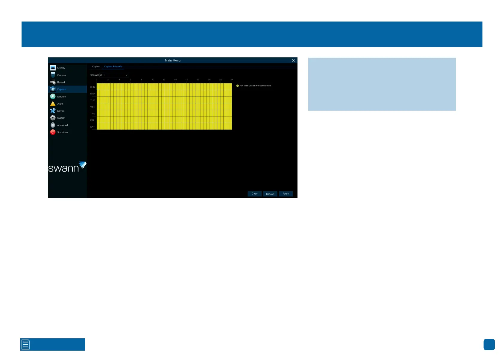 PIR and Motion/Person/Vehicle: A snapshot is taken each time motion has