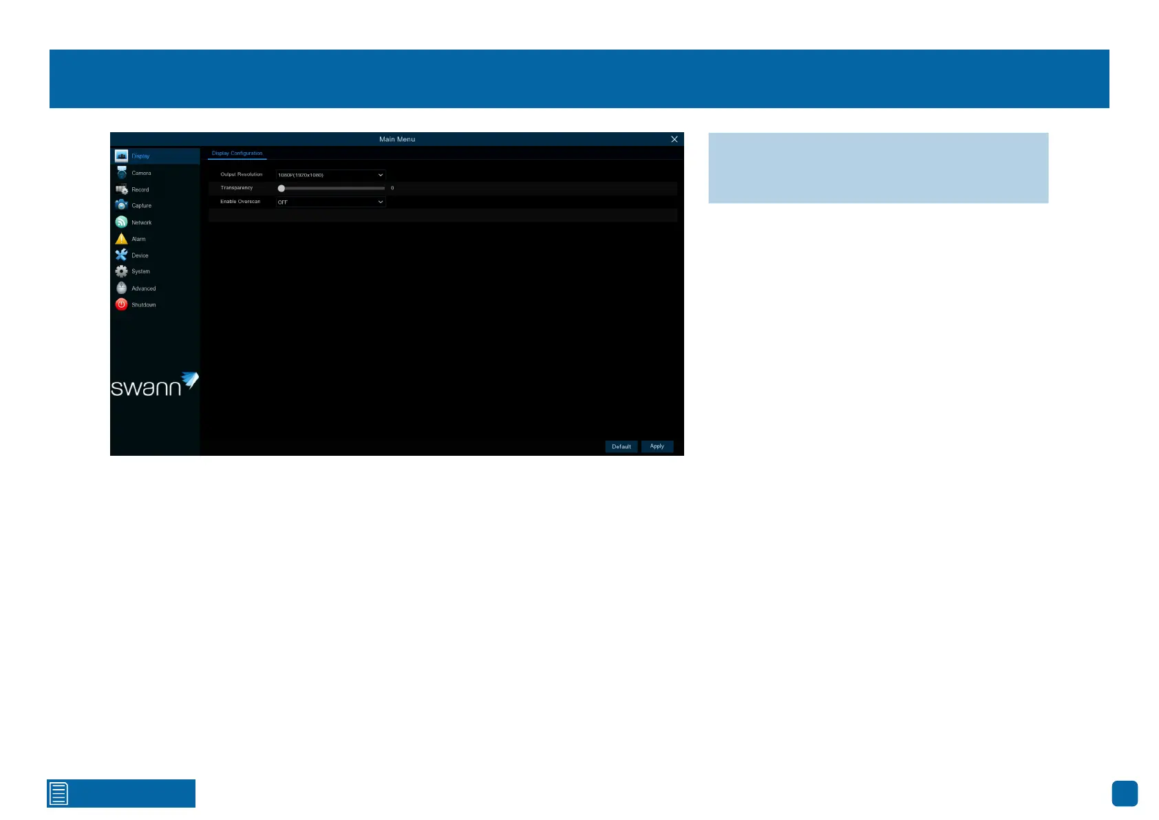 → Click “Default” to revert to default settings.