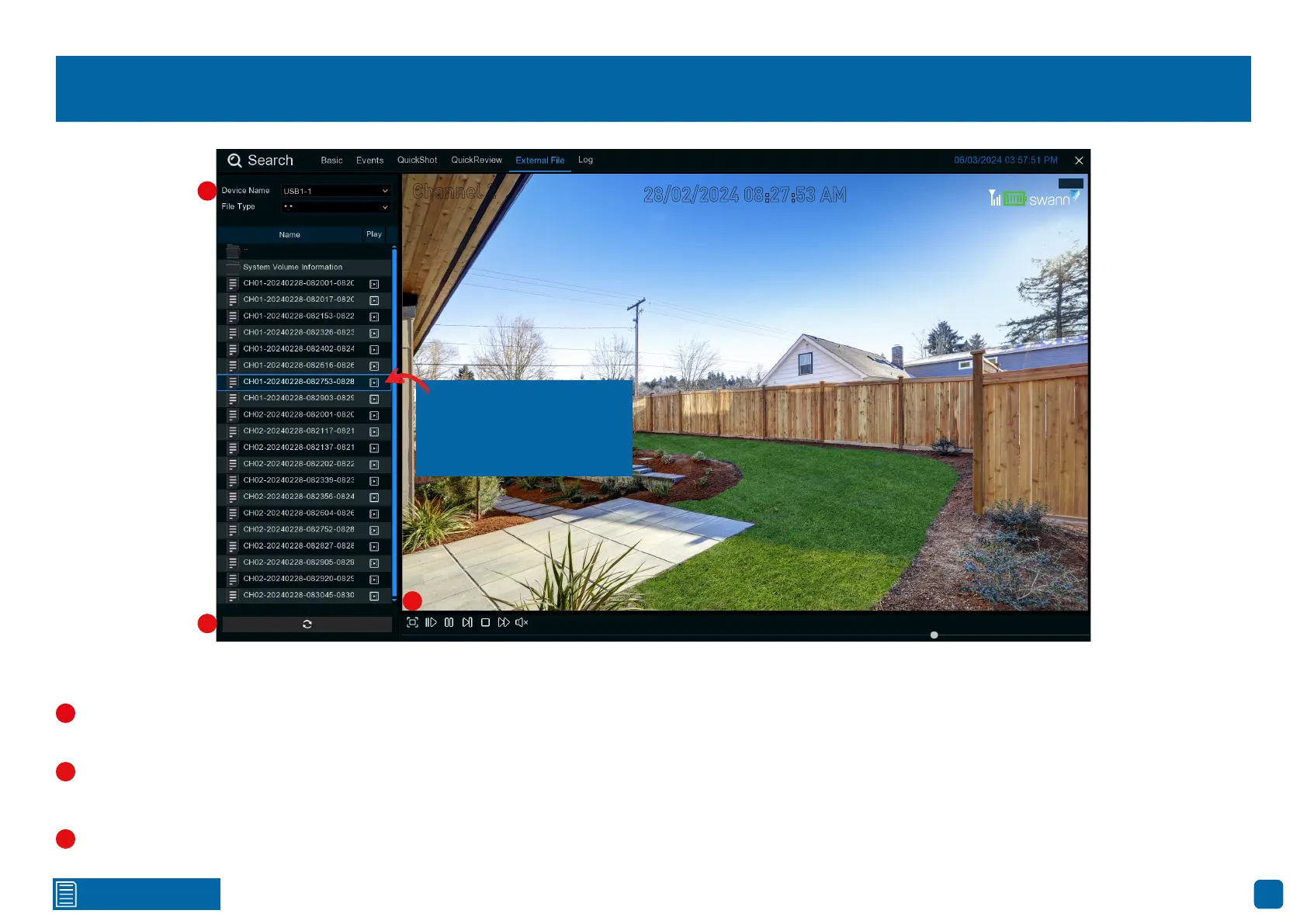 Use this function to play events that you have copied to a USB flash drive.