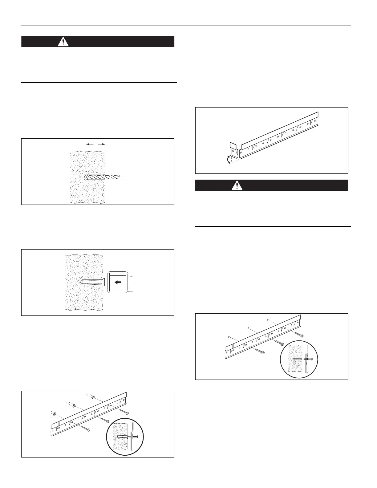 Note: In concrete block walls do not drill the anchor holes into