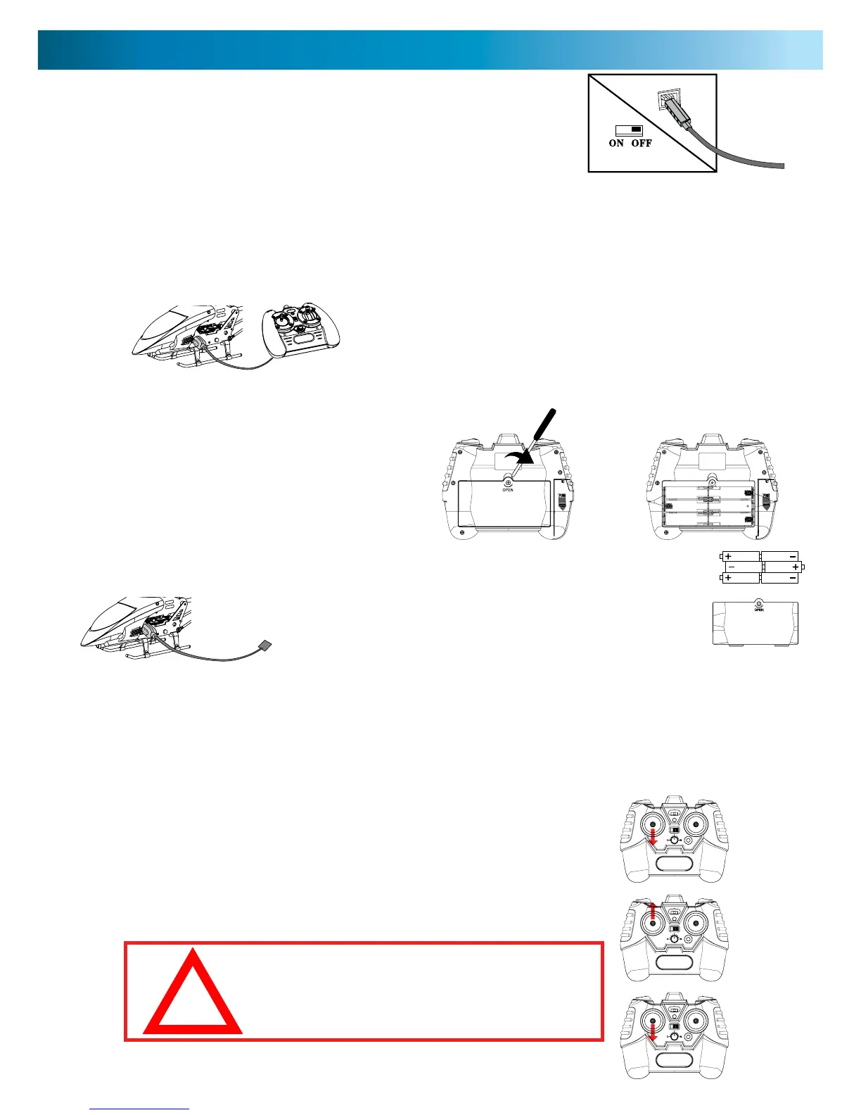 Then, connect the other end to the helicopter. Never connect