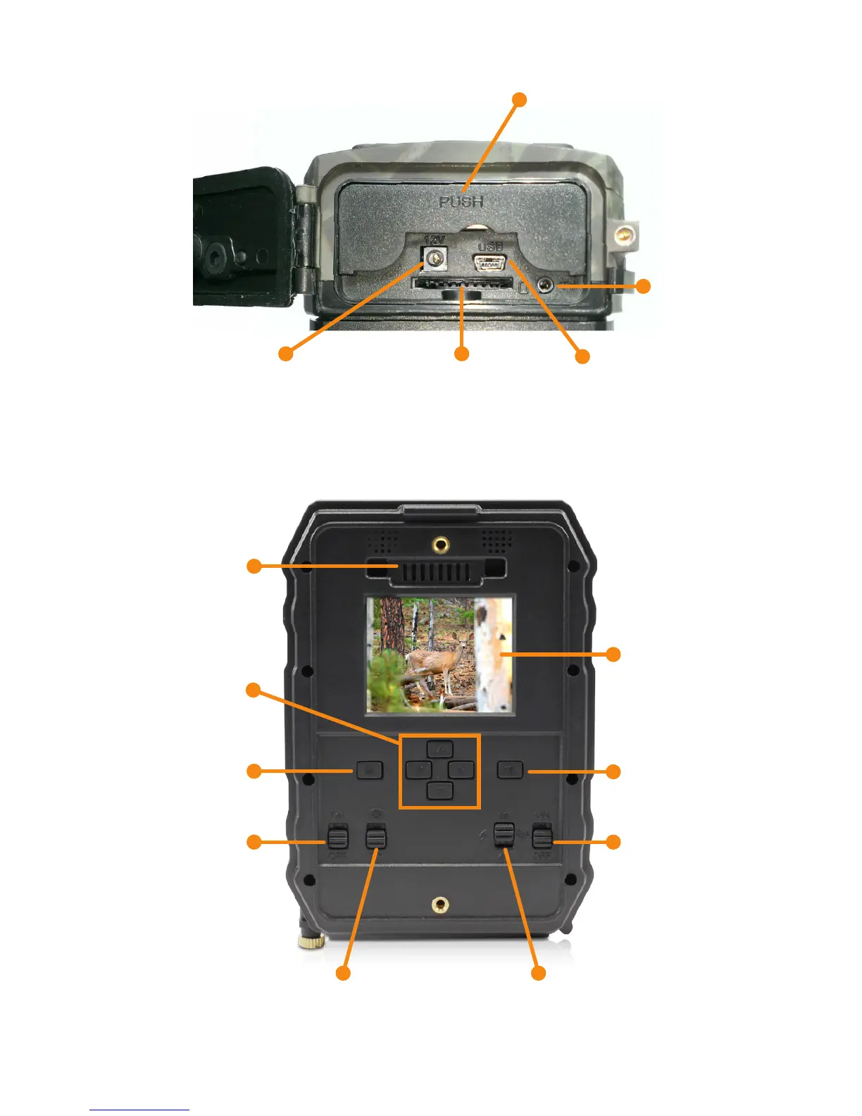 Swann OutbackCam - Bottom Ports and Compartment; Back Panel Controls and Display