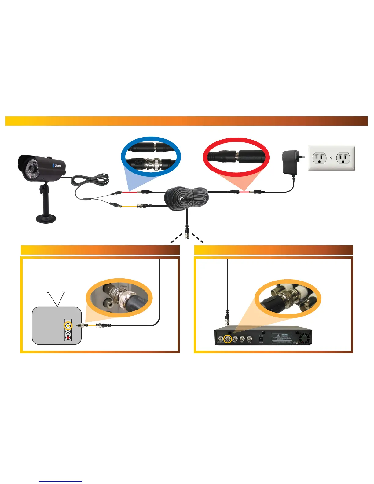 Swann PRO-600 - Connection Guide; Connecting Camera Components; Connecting Directly to TV or VCR