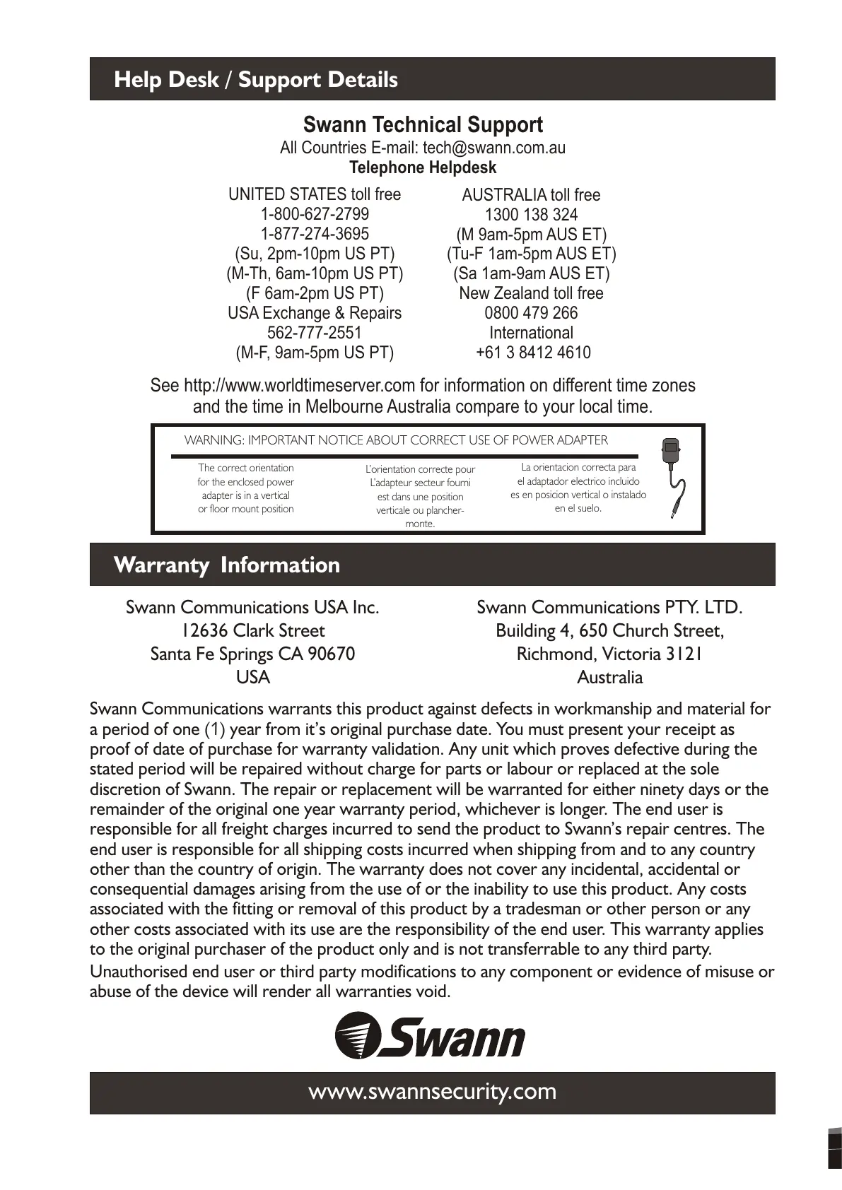 tech@swannsecurity.com or call us on one of the Toll-Free