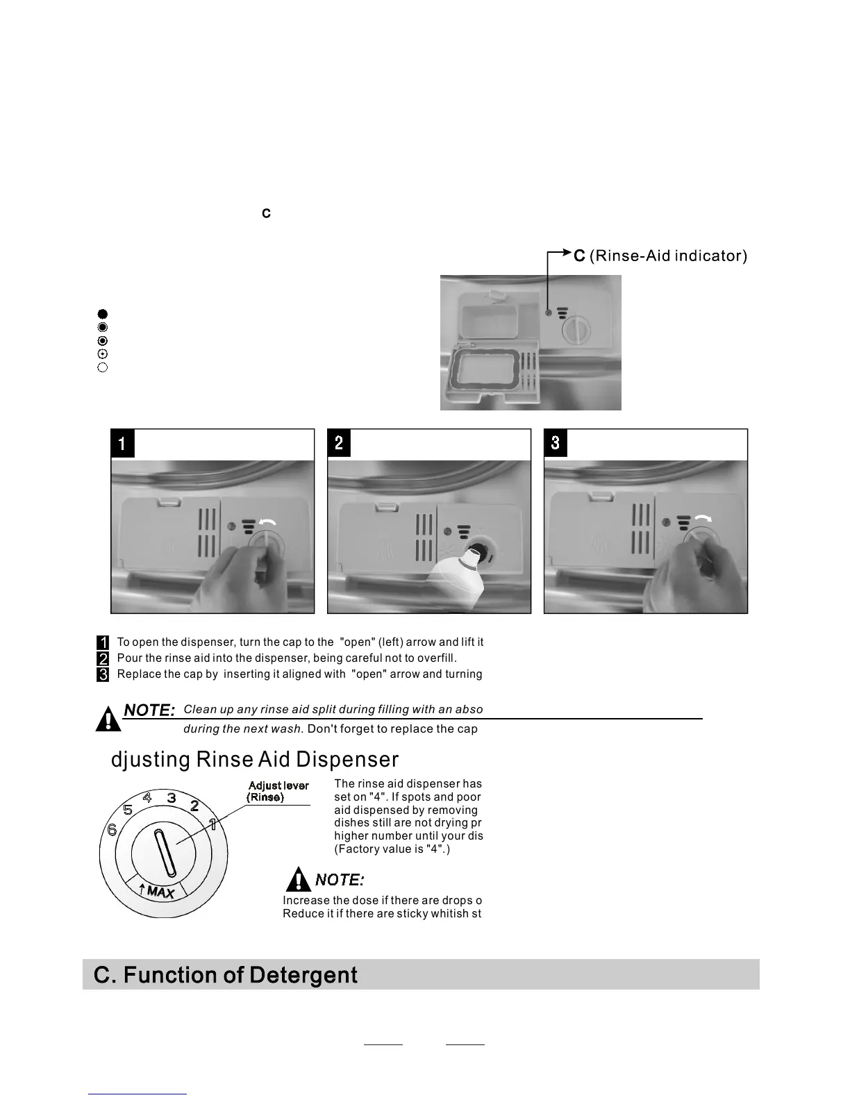 during the next wash. Don't forget to replace the cap before you close dishwasher door.