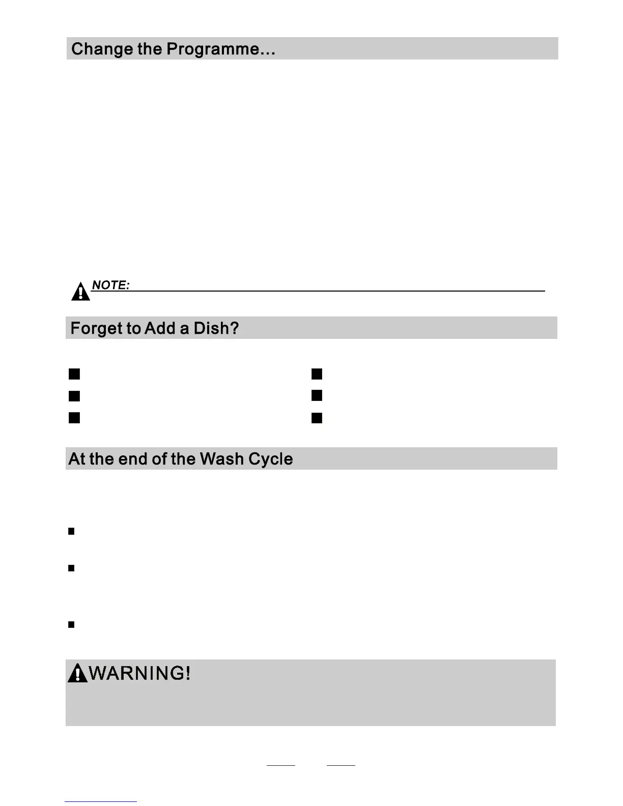 When the working cycle has finished, the buzzer of dishwasher will sound 8 seconds, then stop. Turn off