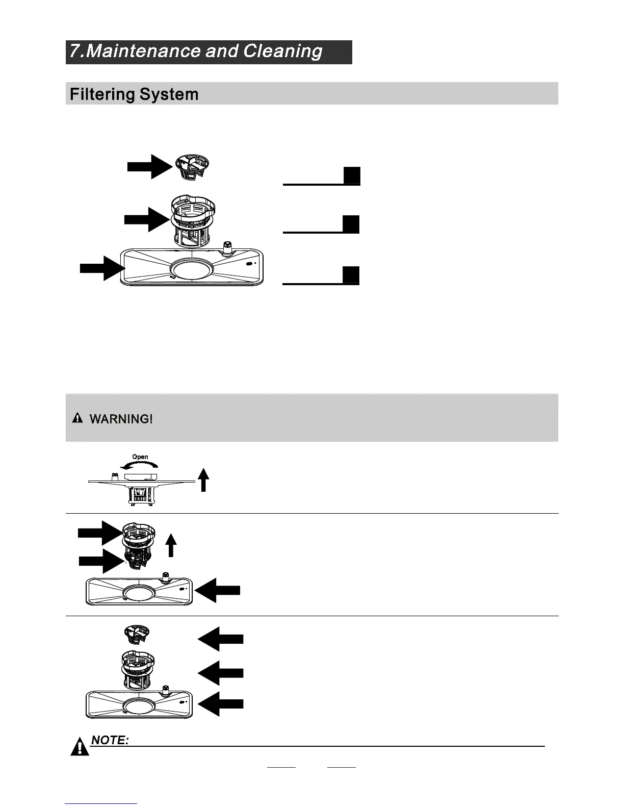 remove the larger food particles trapping in the filter after each wash cycle by rinsing the filter and cup under