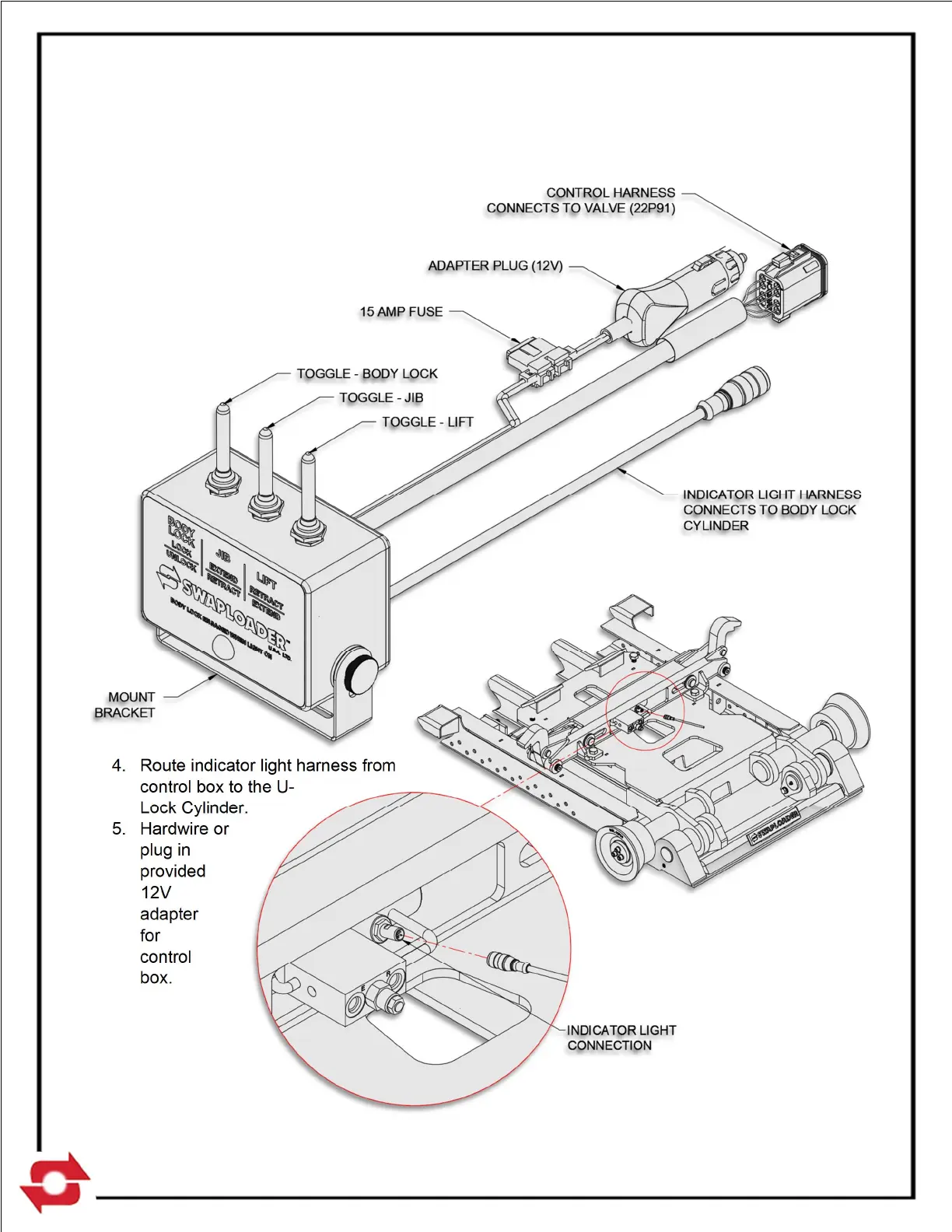 3. Route control harness from valve into the truck cab. Determine the best location in the cab