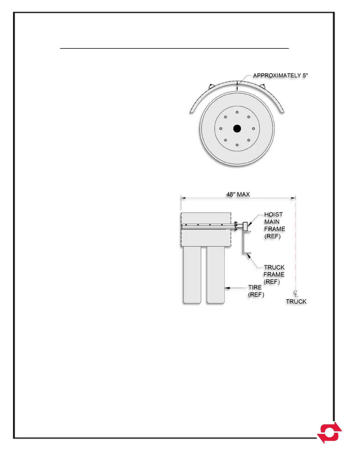 approximately 5” above tire to allow for