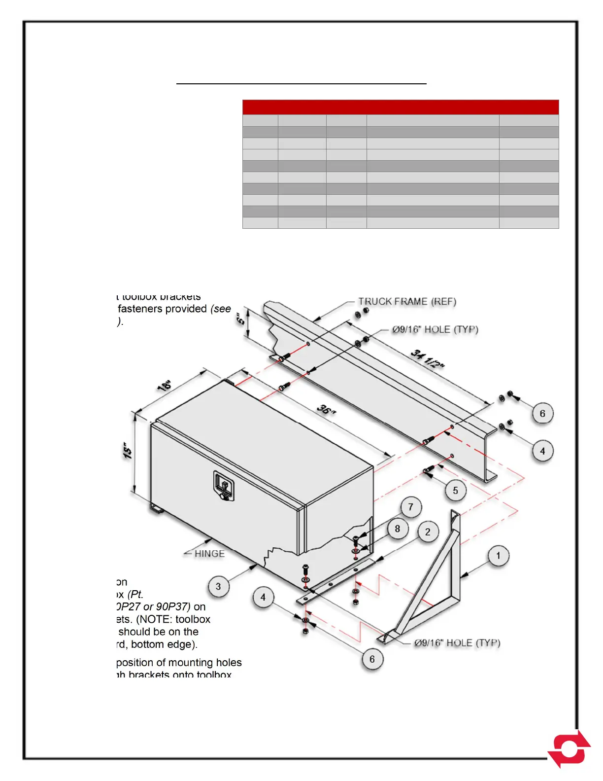 INSTALLATION INSTRUCTIONS – TOOLBOX