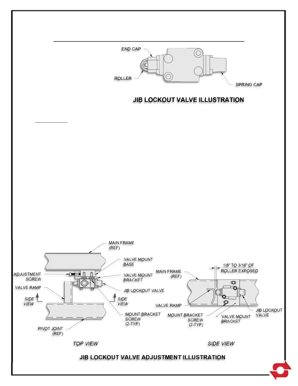 contact with the jib lockout valve roller. The roller should be depressed by the valve ramp so