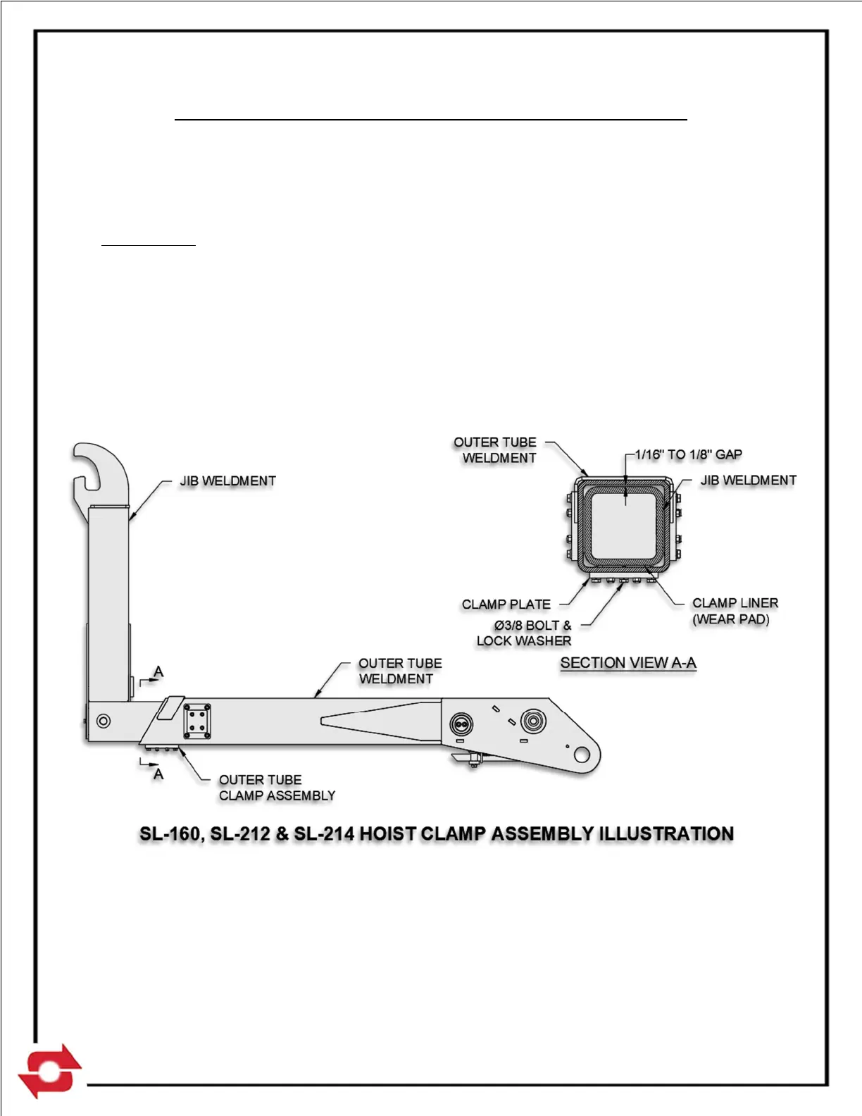 The illustration below is a typical hoist clamp assembly for the SwapLoader SL-160
