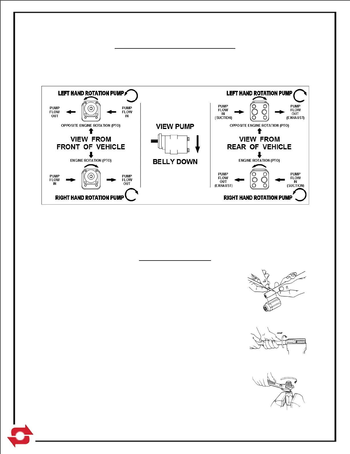 Determine pump rotation by positioning the pump belly side down (see illustration above).