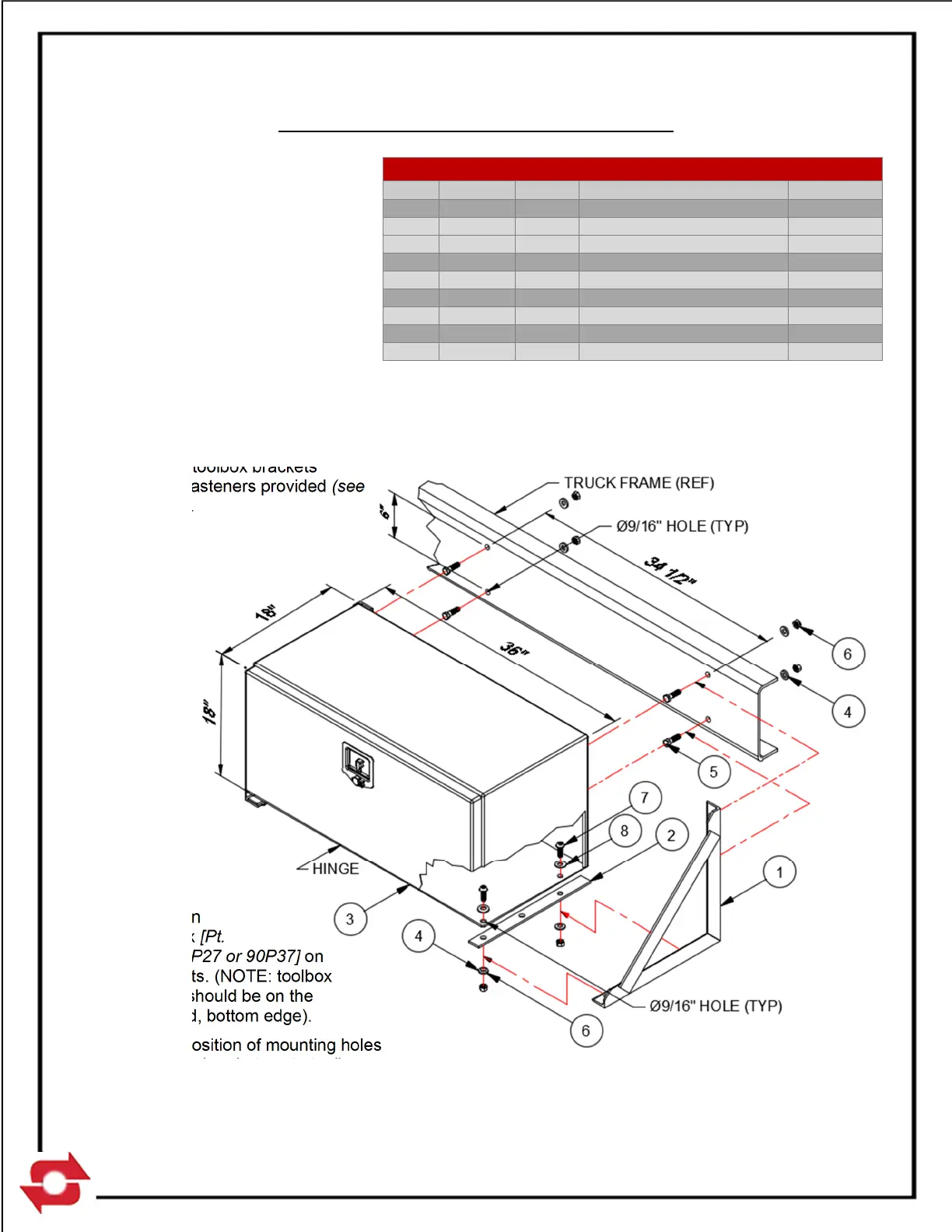 INSTALLATION INSTRUCTIONS – TOOLBOX