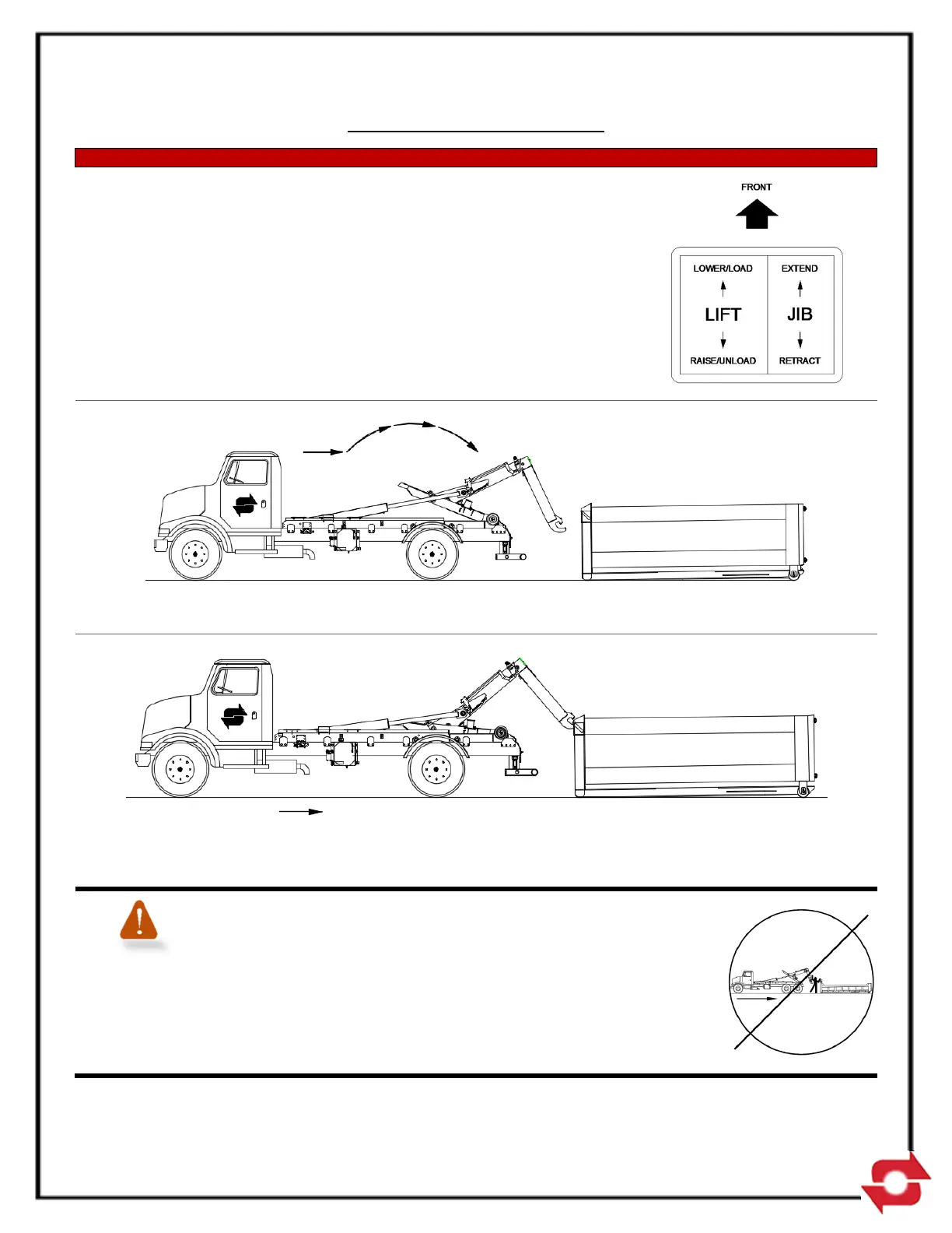 backwards until the hook engages the curved lifting bar of the container. NEVER EXTEND THE