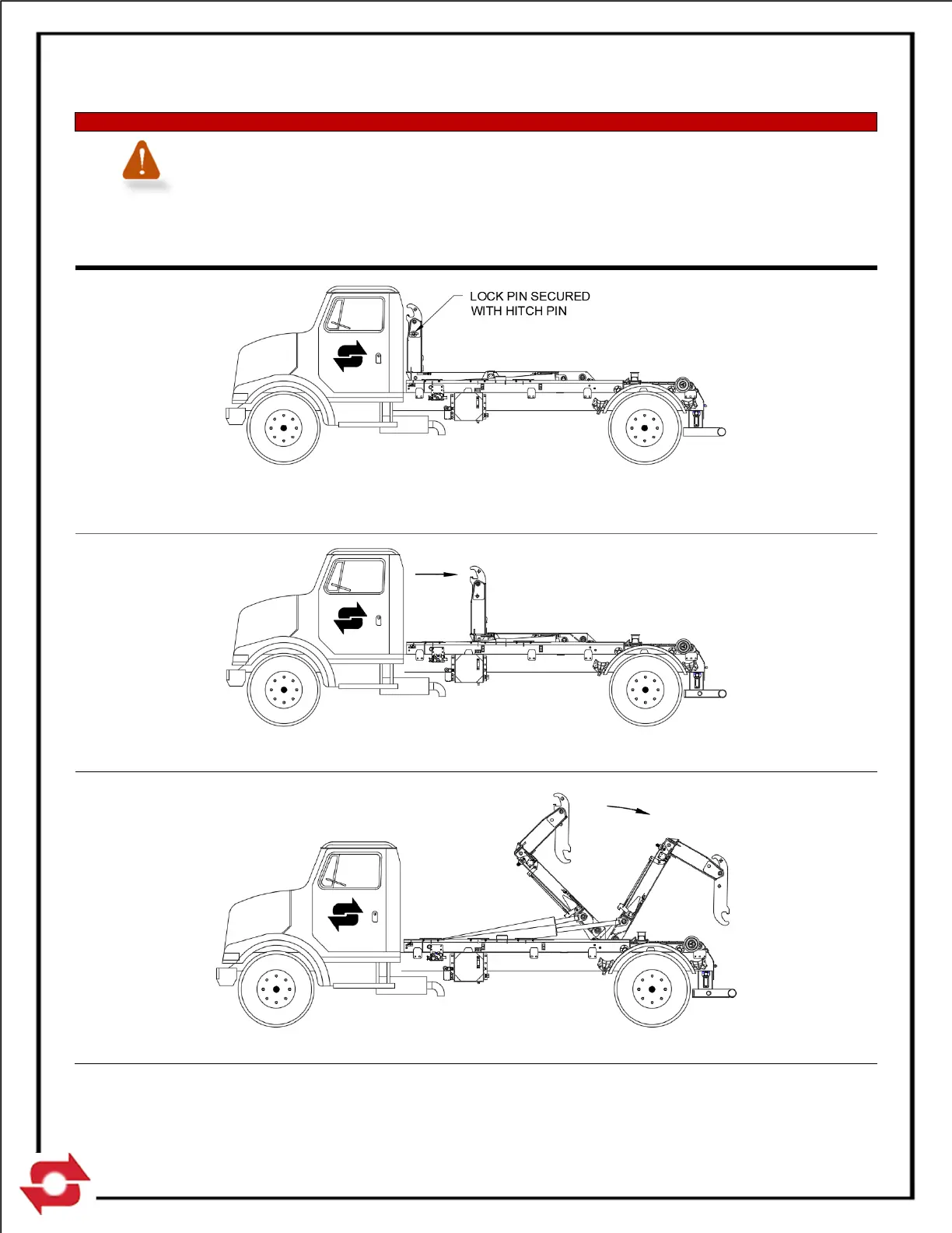 STEP 1. With the telescopic arm in the transport position (as shown); remove the hitch pin from the lock