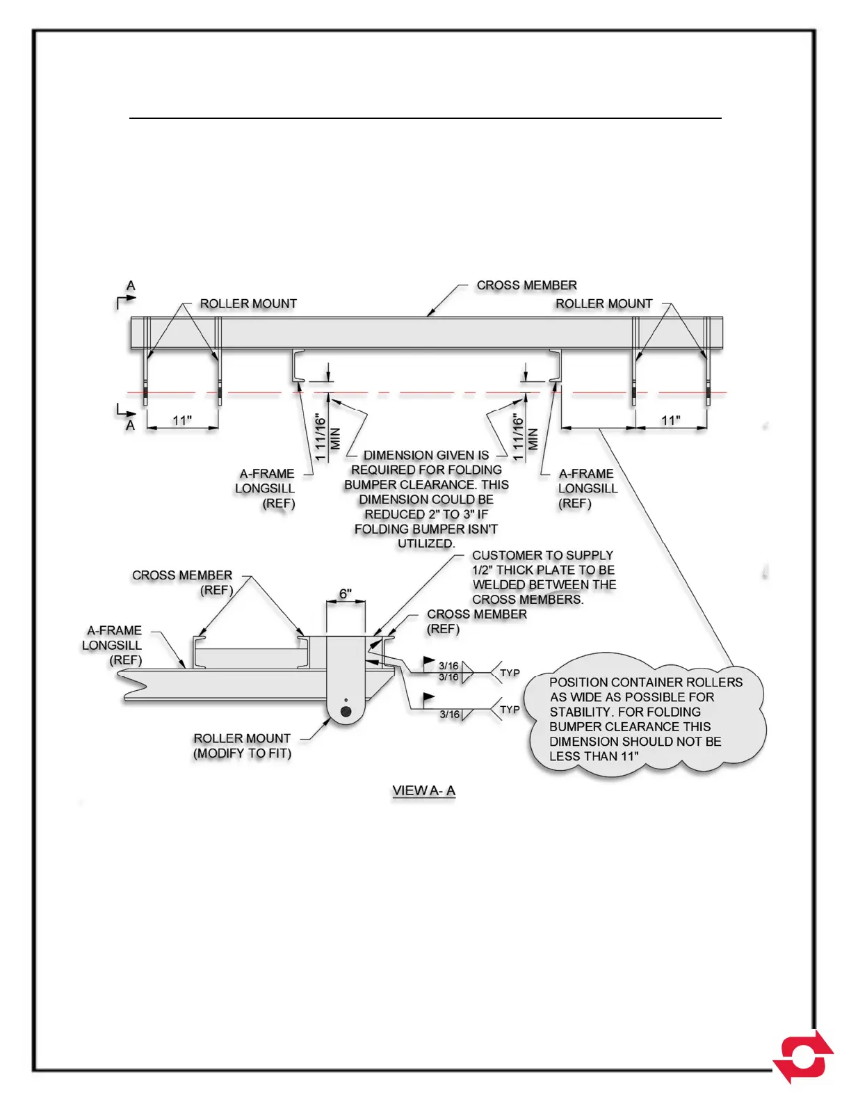 11/16” below the bottom of the subframe longsill for roller clearance (see Fig. A).
