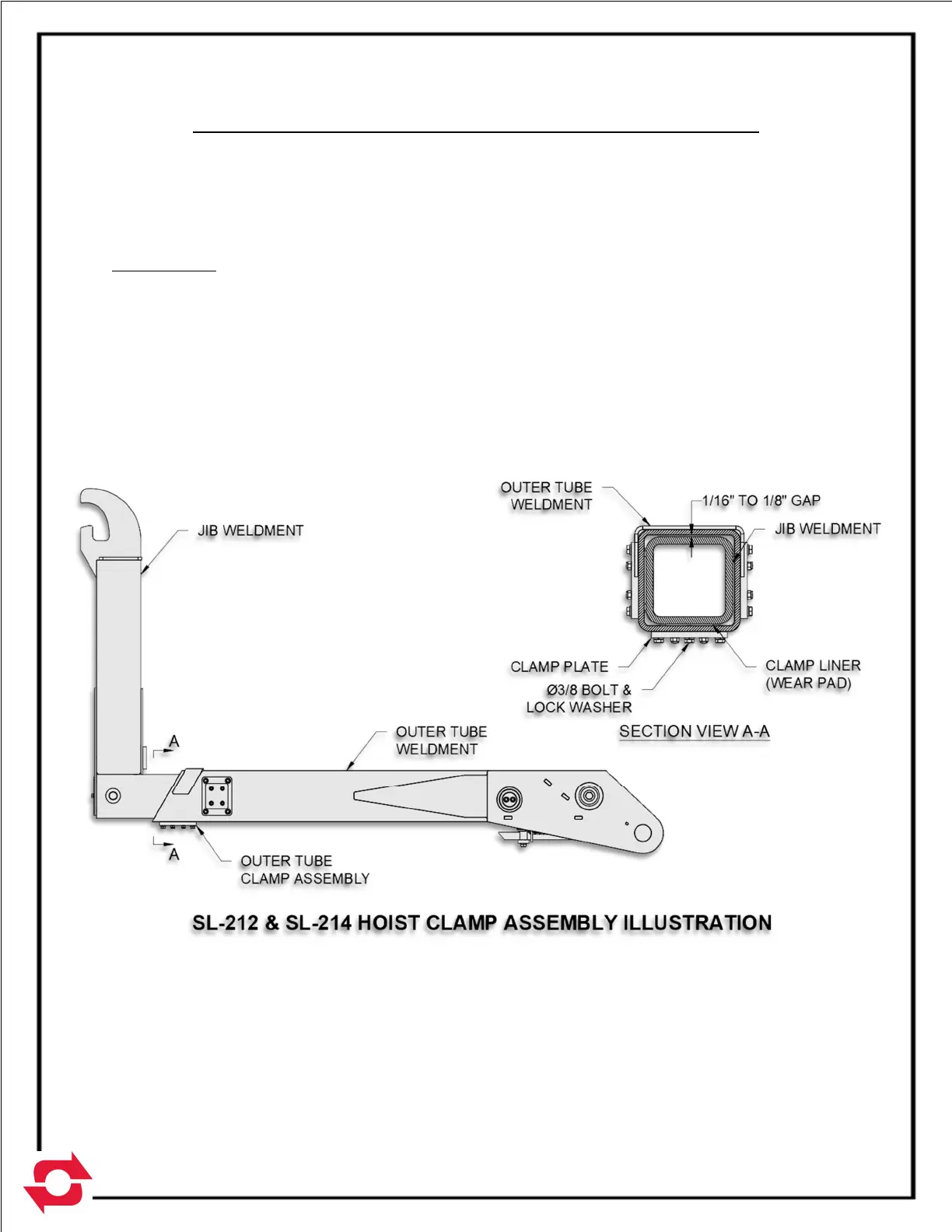 The illustration below is a typical hoist clamp assembly for the SwapLoader SL-214