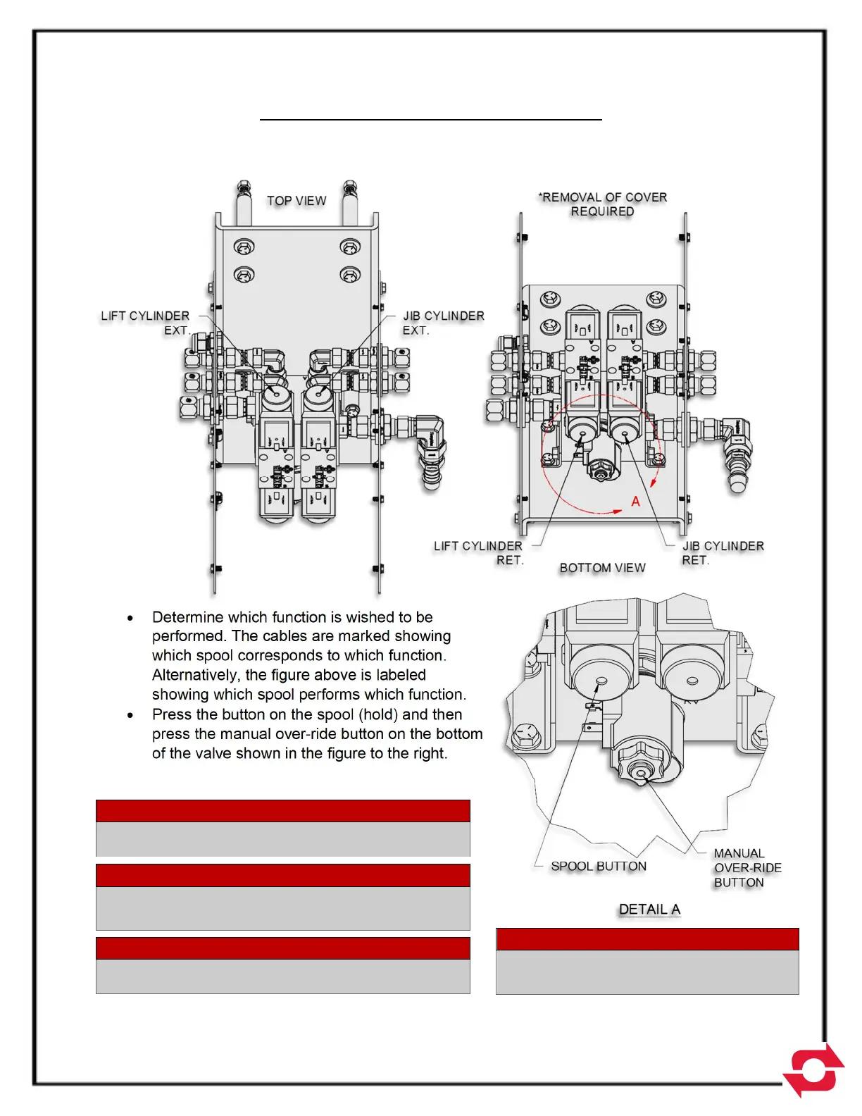 cylinders can still be moved manually using the manual over-ride button and valve spool.