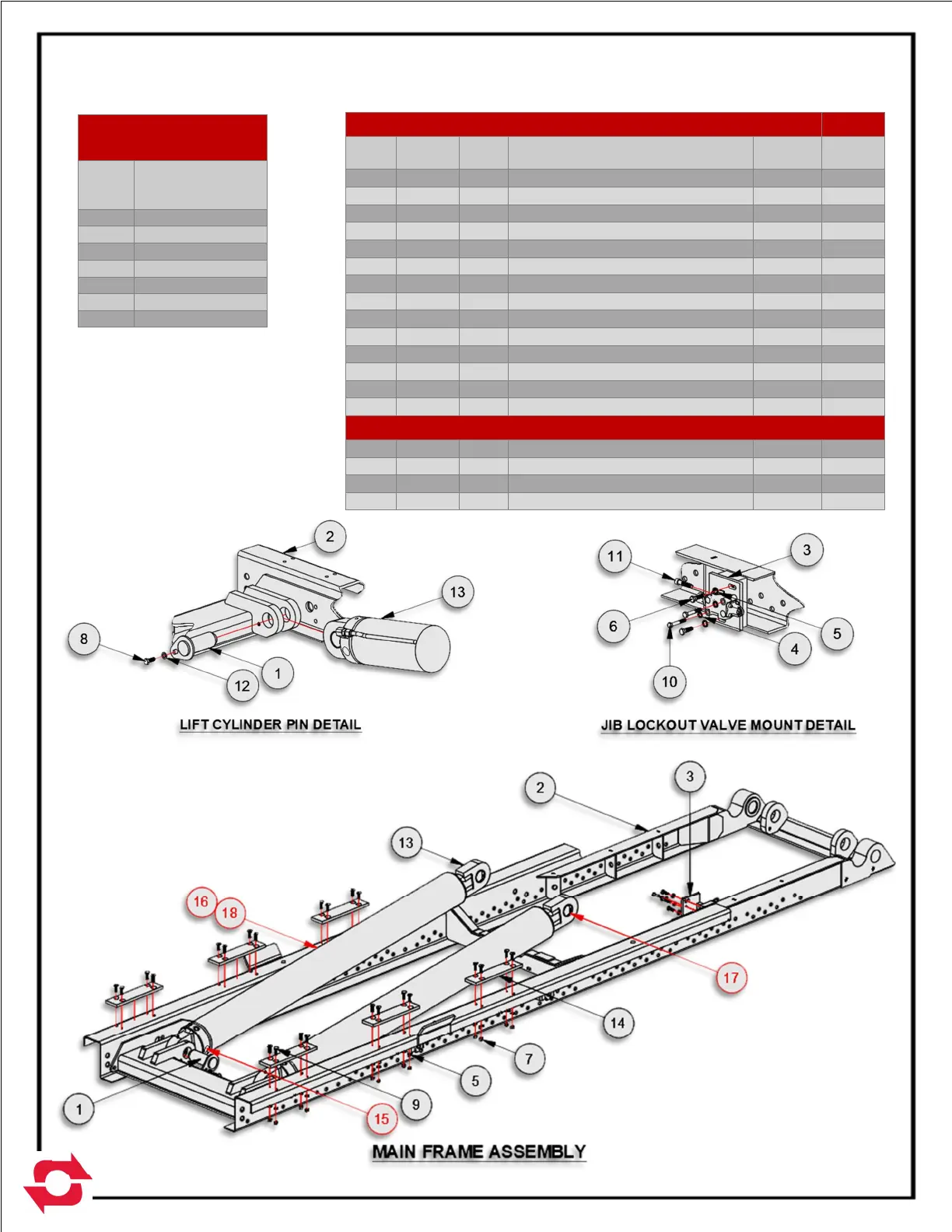 LIFT CYLINDER SERVICE PARTS