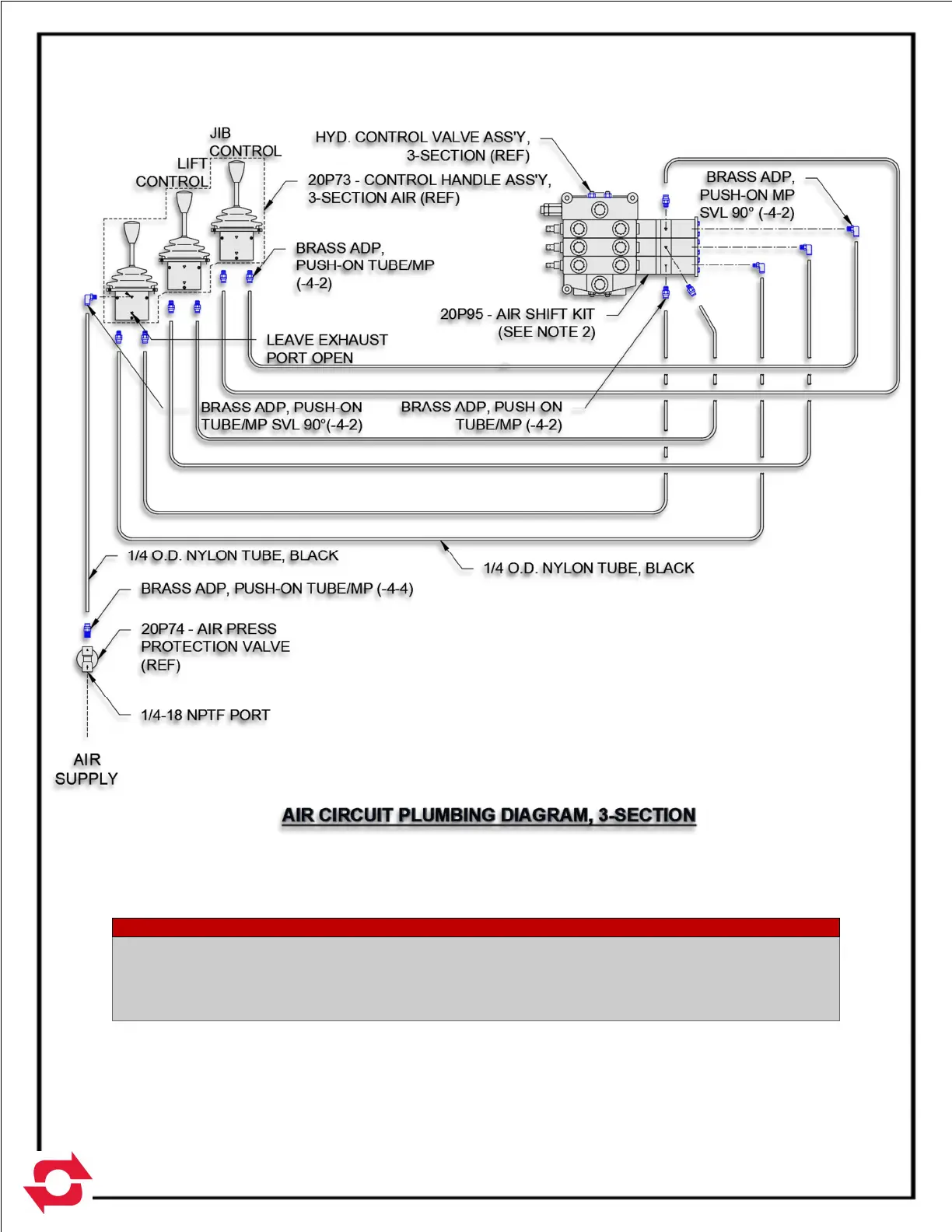 2. THE 20P95 AIR SHIFT KITS ARE TO BE INSTALLED ON THE HYD. CONTROL VALVE BY THE HOIST INSTALLER.
