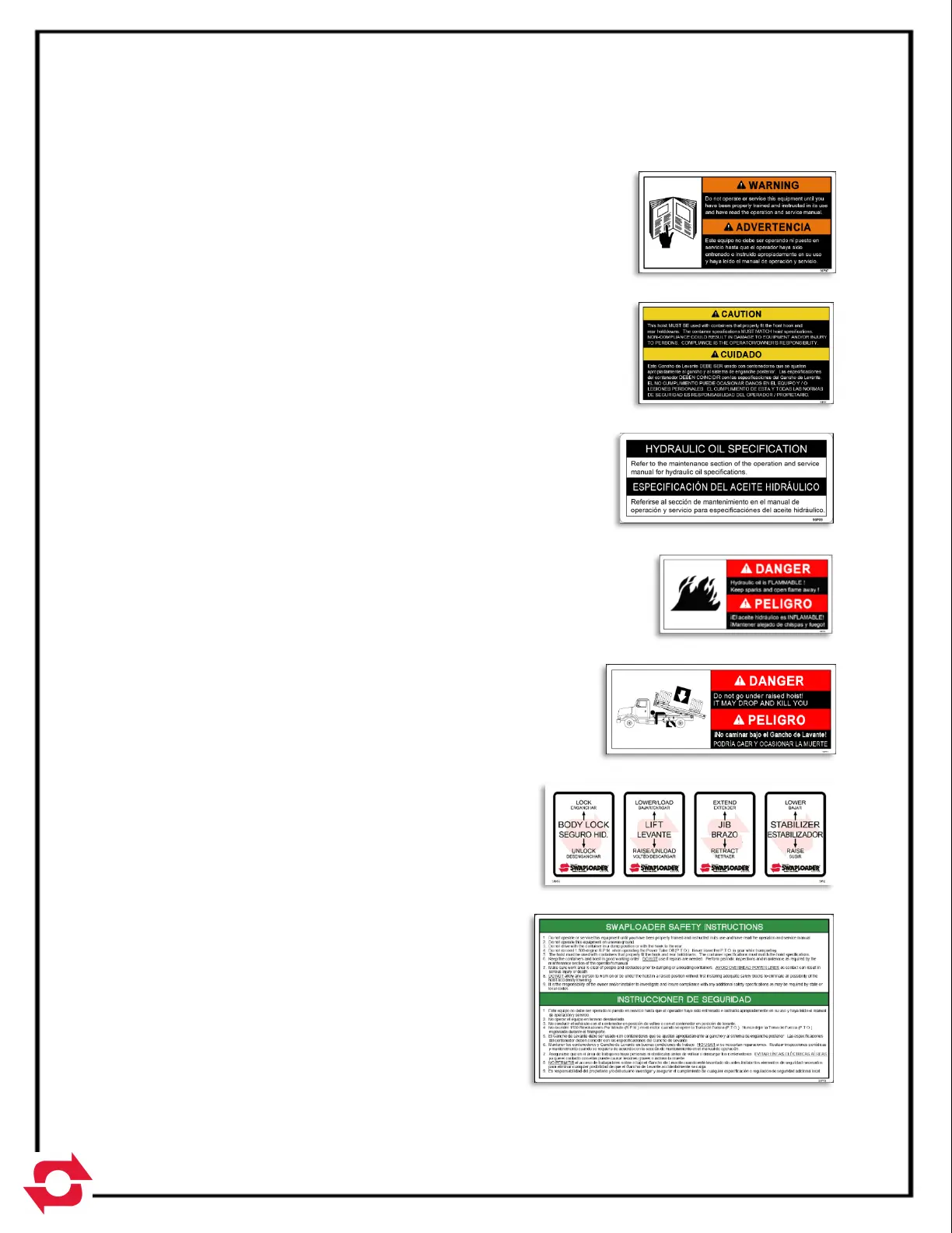 The following is a list of all the SwapLoader Safety Decals, and their part numbers. Please use
