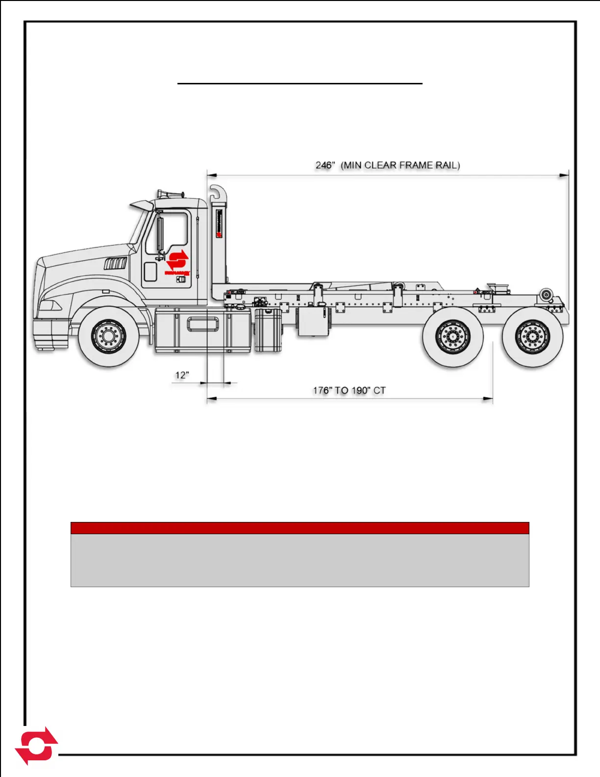 1. Place the SL-520X hoist assembly on the truck chassis. The truck chassis mounting surface