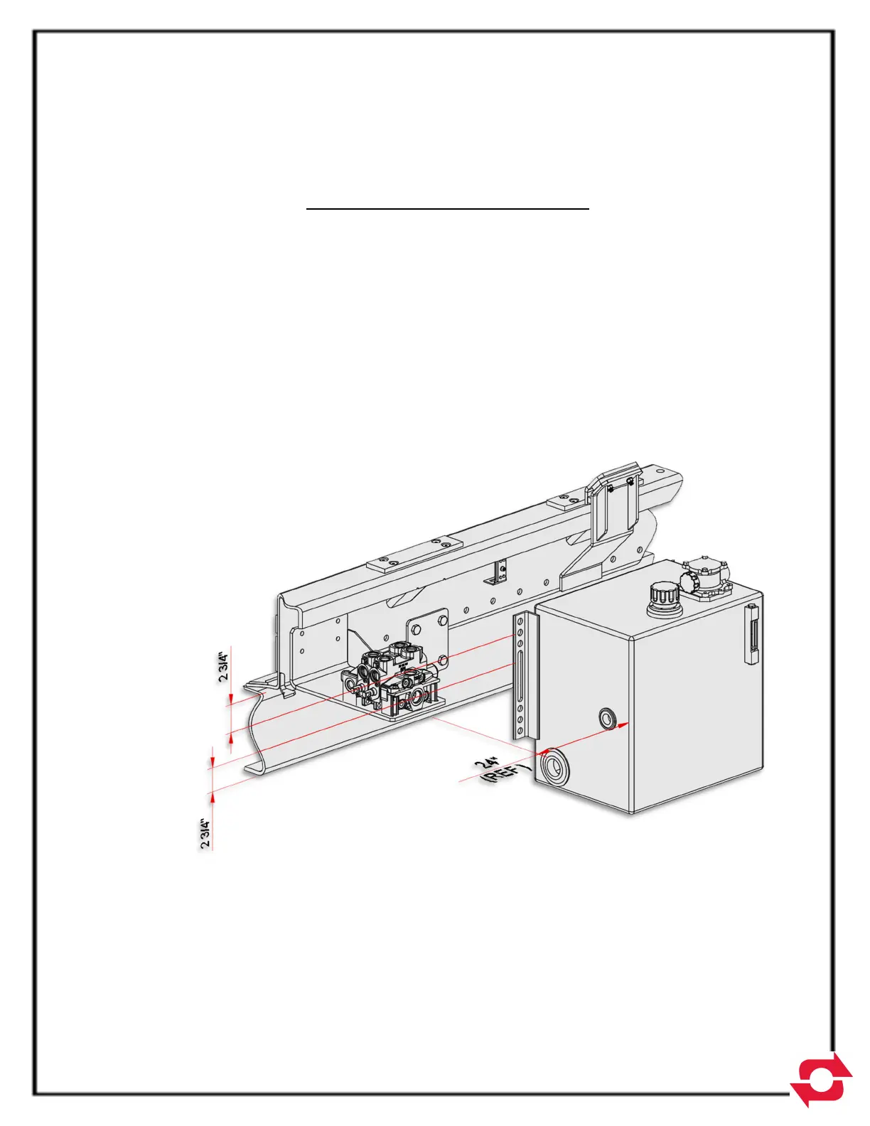 2. Drill four (4) holes for 1/2” diameter bolts (provided) in the mount angle of the hydraulic tank