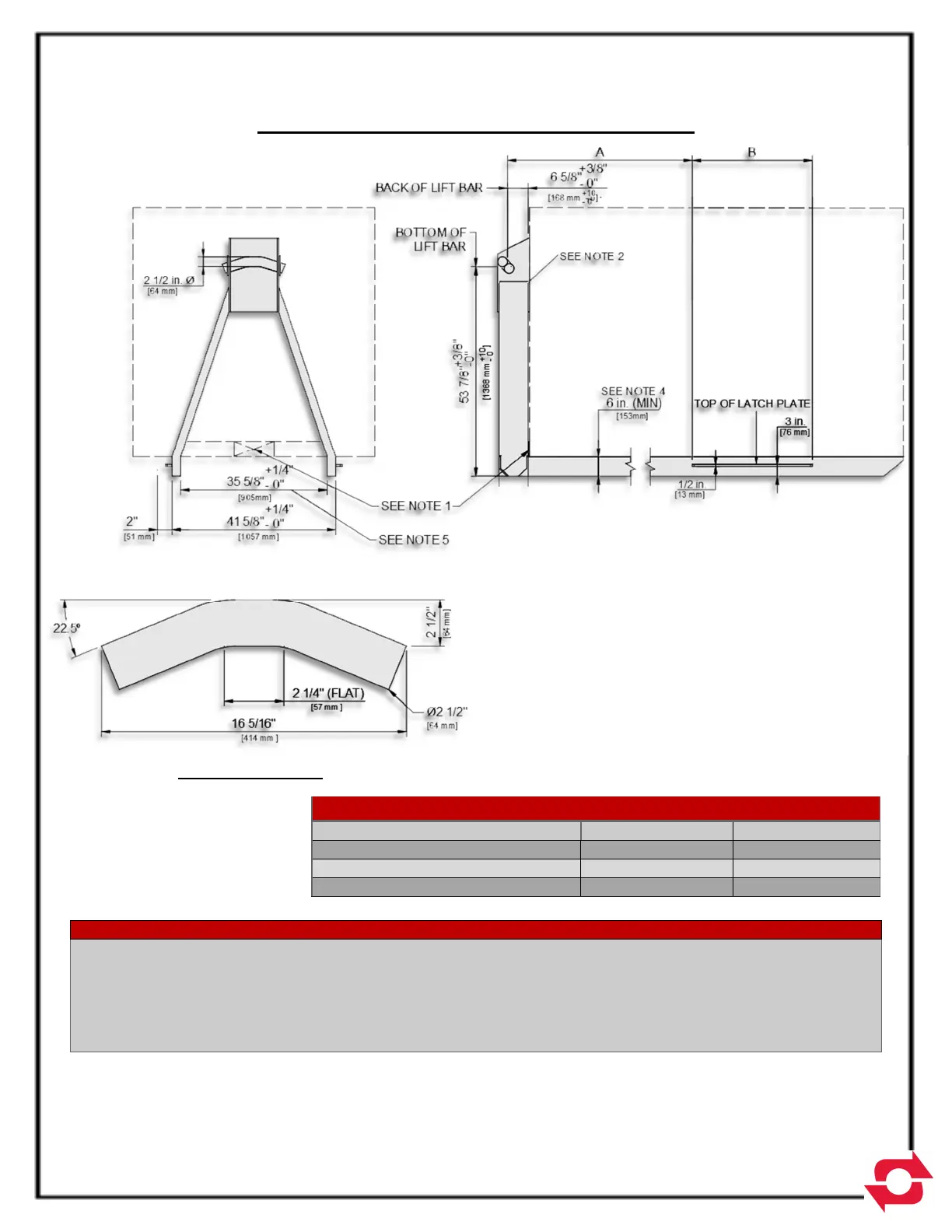 THIS DRAWING PROVIDES THE CRITICAL SUB-FRAME DIMENSIONS FOR COMPATABILITY WITH THE SWAPLOADER HOOK