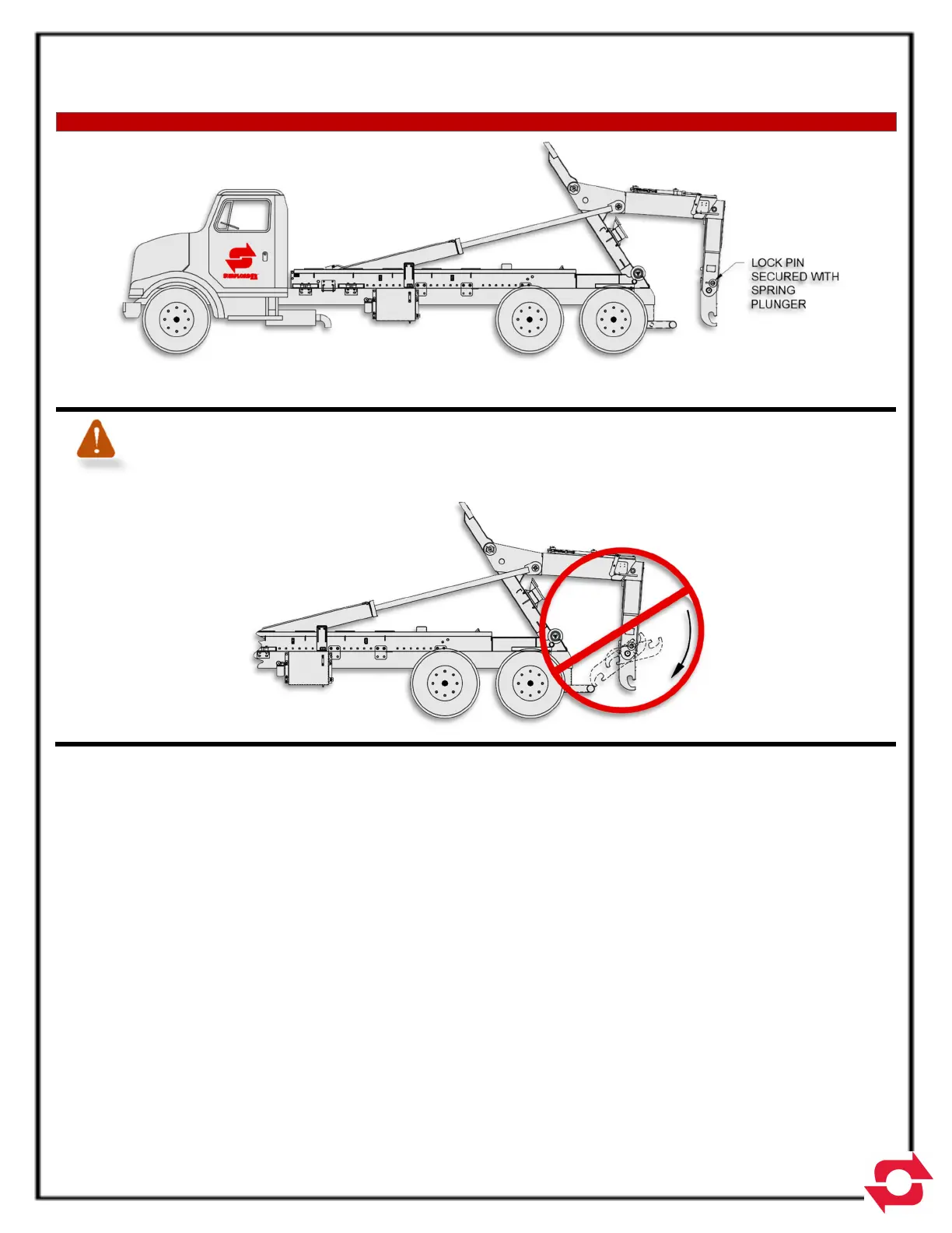 PUSH LOCK PIN BACK IN UNTIL SPRING PLUNGER ENGAGES. ENSURE PIN IS LOCKED IN PLACE.