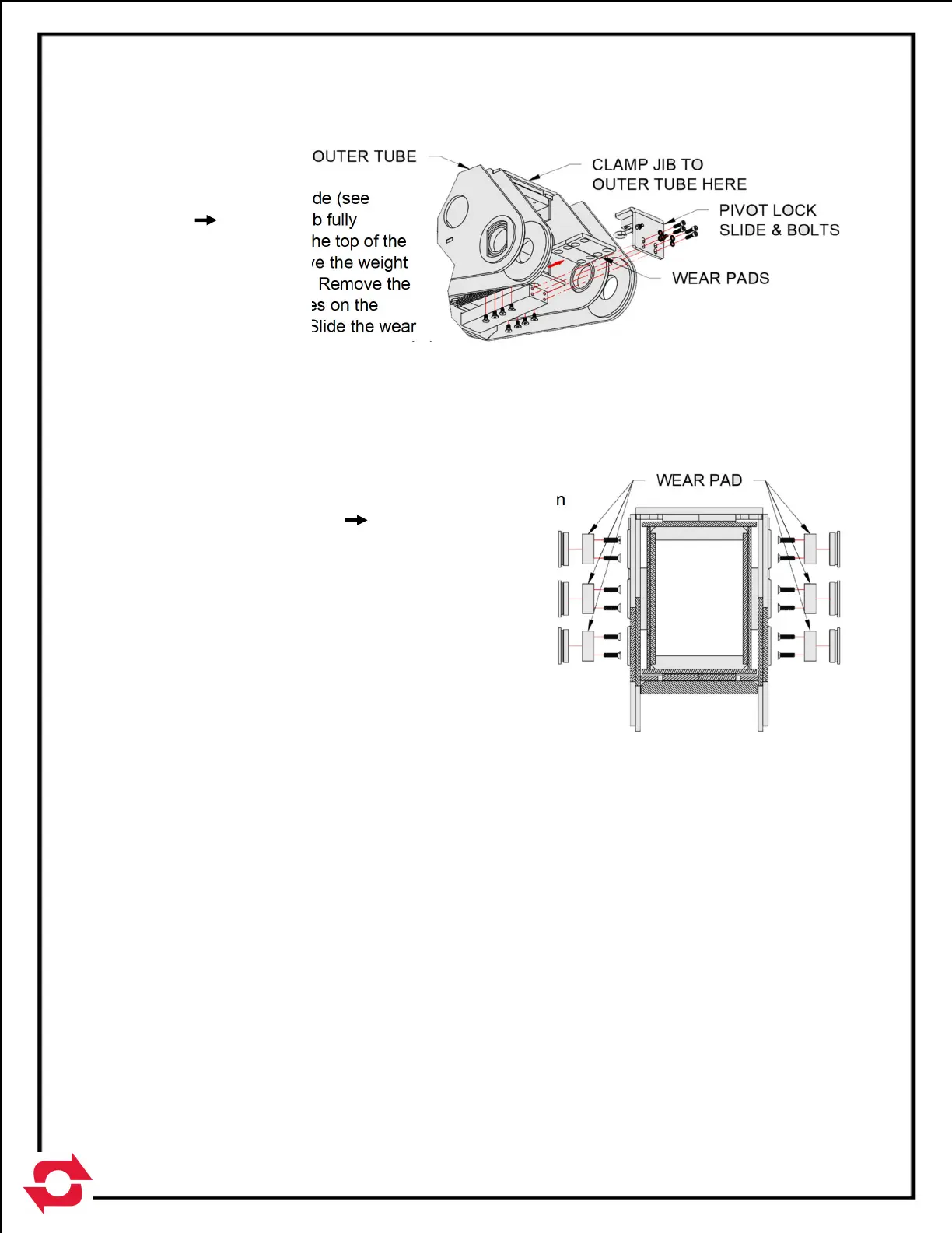 the jib. It is possible to tighten the wear pad mount in