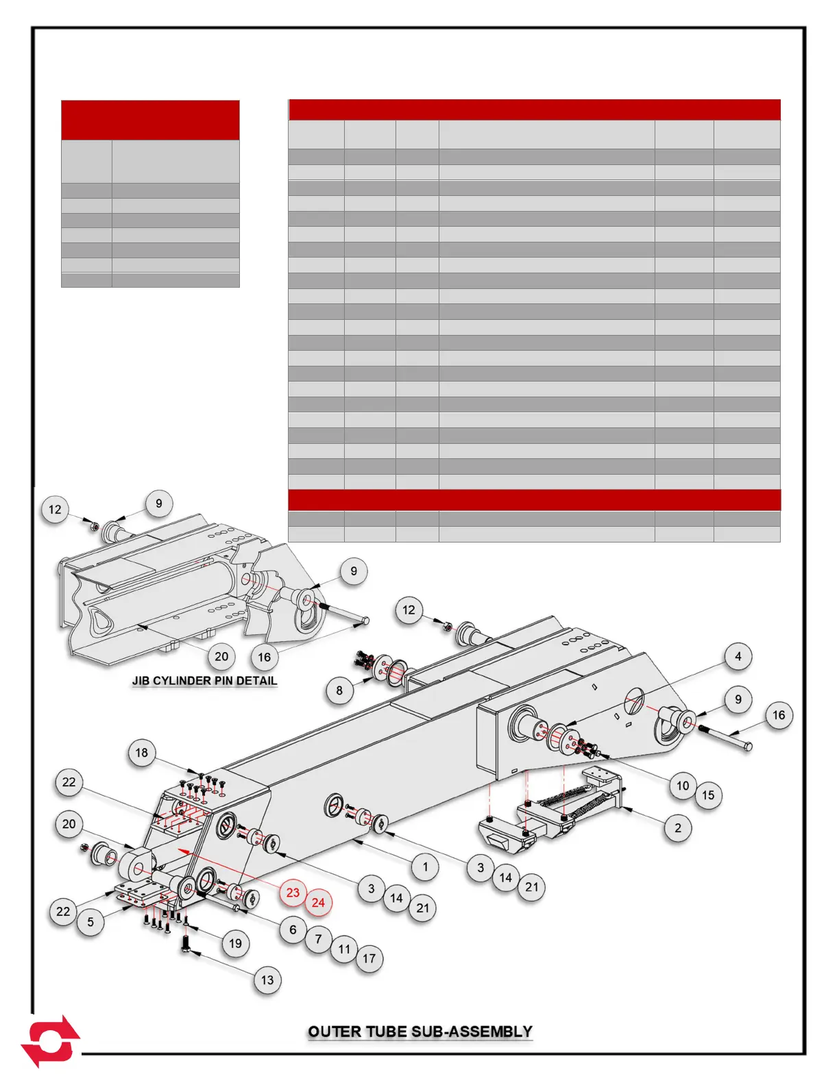 JIB CYLINDER SERVICE PARTS