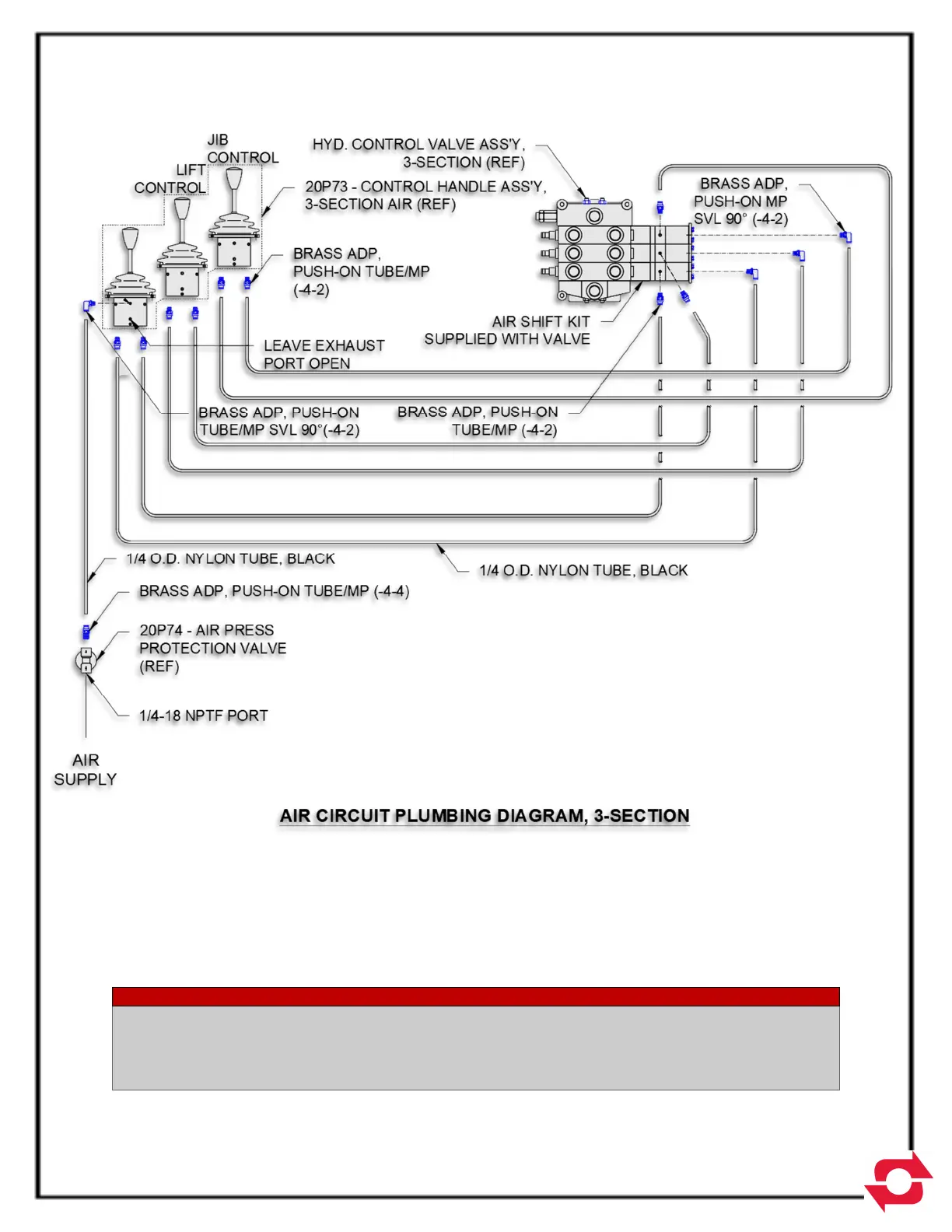 2. THE 20P71 AIR SHIFT KITS ARE TO BE INSTALLED ON THE HYD. CONTROL VALVE BY THE HOIST INSTALLER.