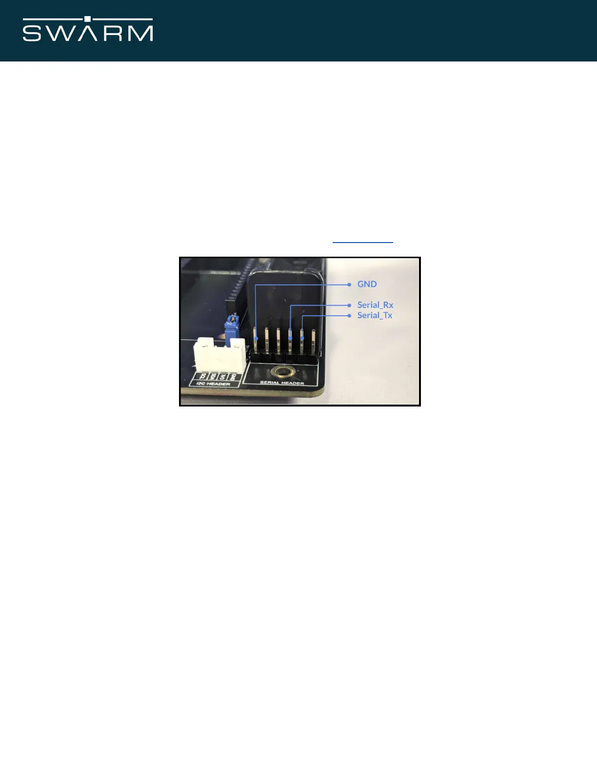 Figure 6: Example of a Serial Debug Header, shown on the Swarm Eval Board