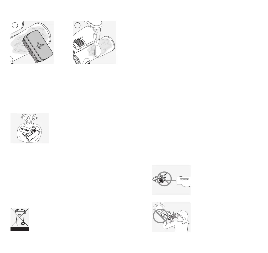 Если вы чистите бинокль не в помещении, убедитесь в том,