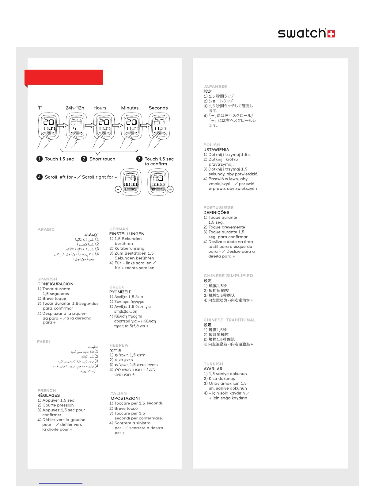Swatch SWISS - Adjusting Watch Settings (E); Touch Controls for Settings; Confirming Settings