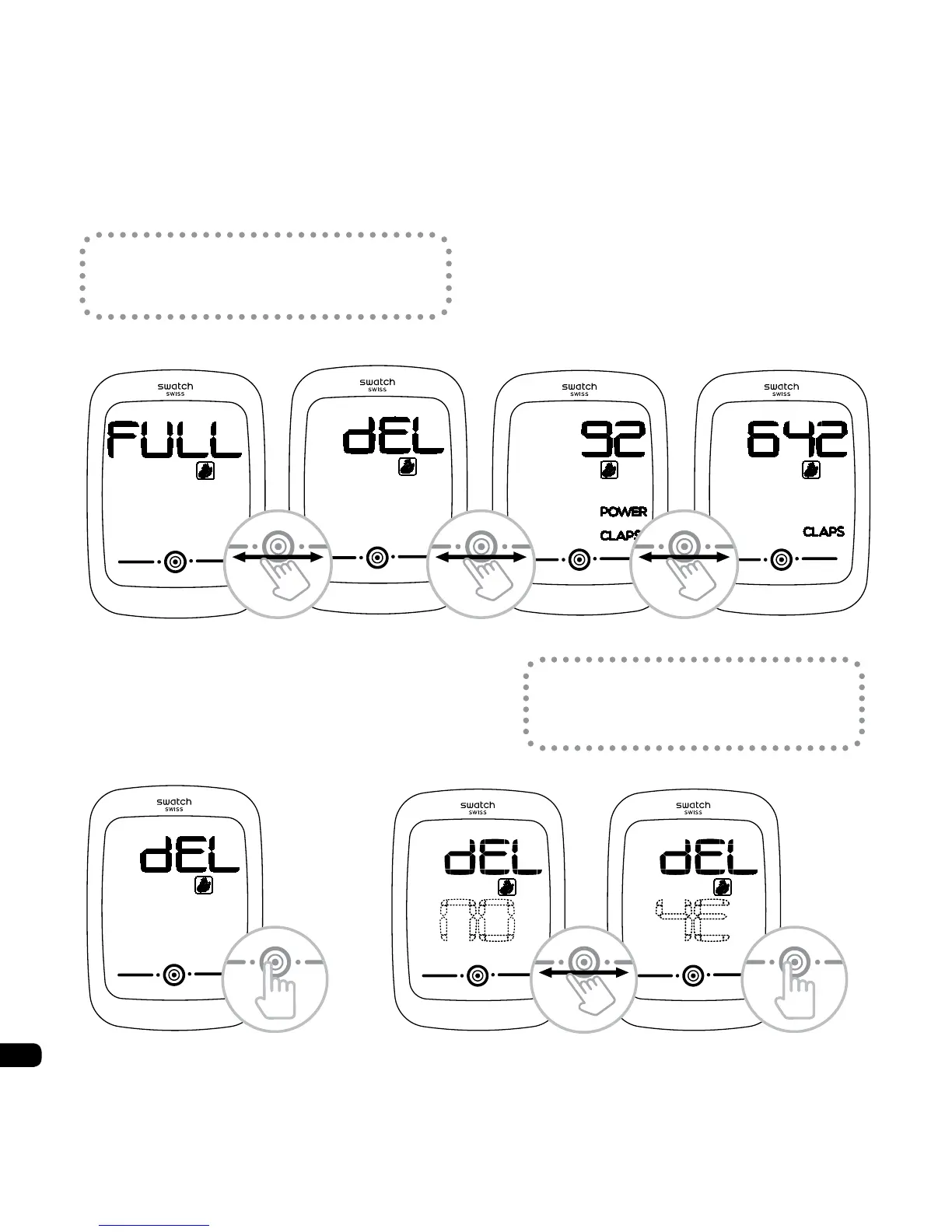 Swatch Touch Zero One - 4.3. Memory full (erase data); dEL (delete data)