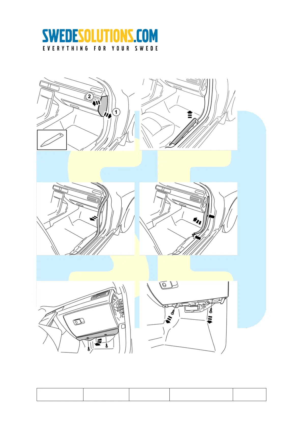 1 -> Remove the side panel, using a fishbone tool OR open glove compartment first then pull on the side of the panel (1)