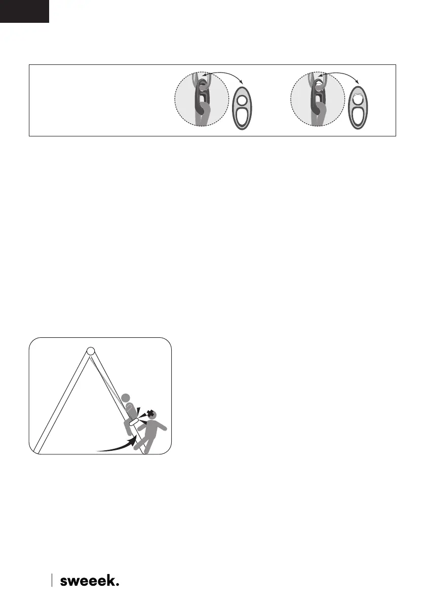 • A altura do balanço pode ser ajustada usando o ilhó de xação de plástico. Puxando na corda pelo